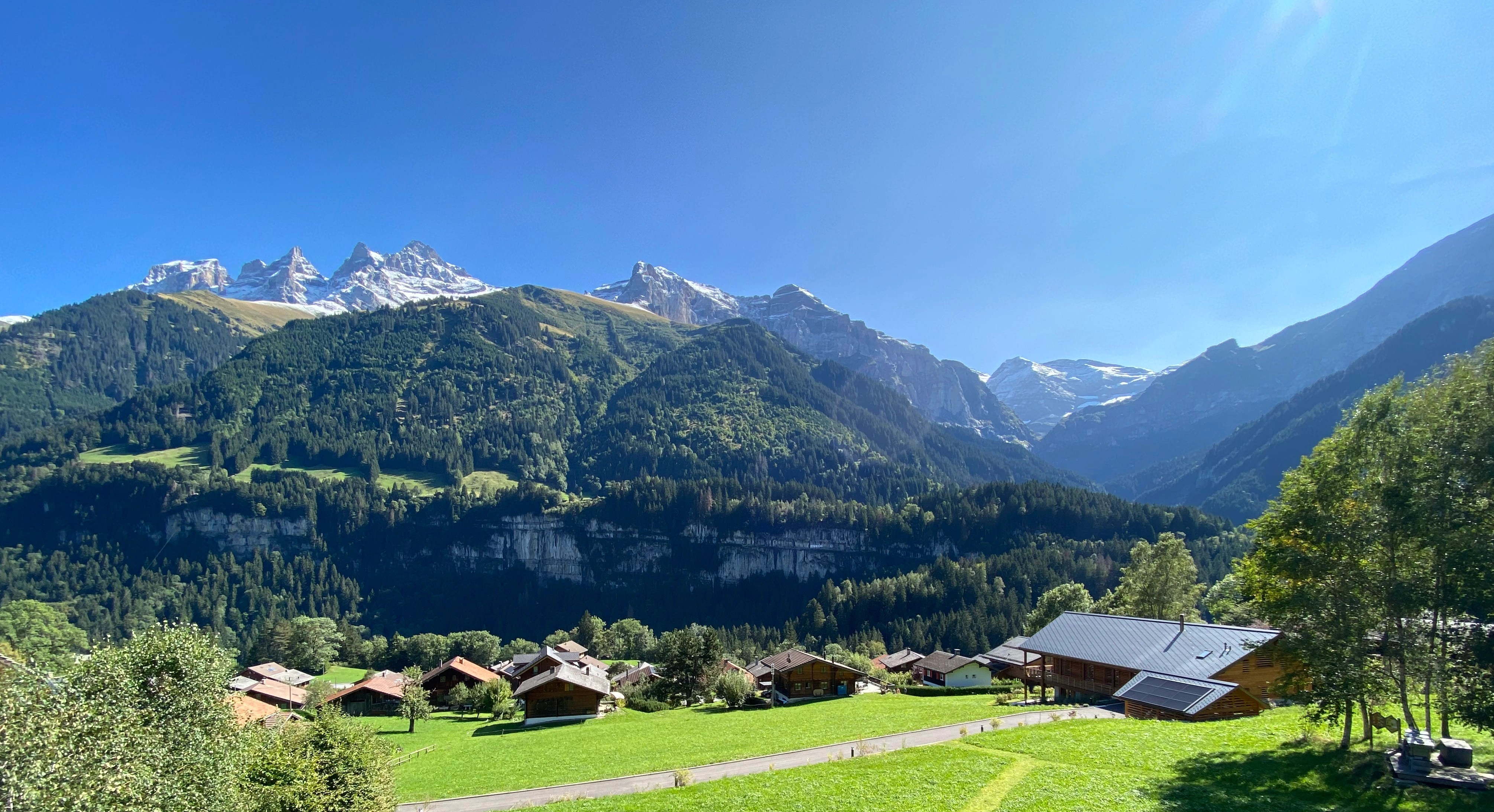 Champéry (altitude of 1050 meters) is a typically Swiss village with preserved architecture, 90 minutes from Geneva (airport), also reachable by train.